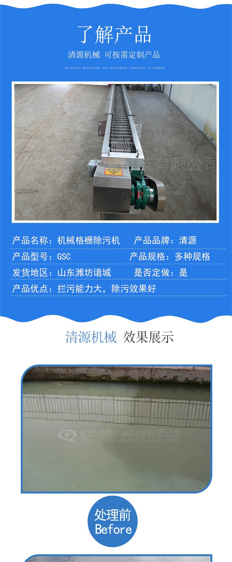 我公司除生產格柵除污機外還生產砂水分離器,洗砂污水處理設備,工業污水處理設備,地埋式污水處理設備,氣浮機,真空帶式過濾機等等其他污水處理設備。