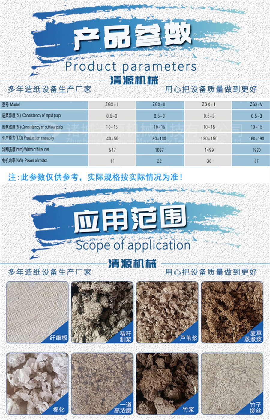 此外,我公司還生產高速洗漿機、地埋式污水處理設備、氣浮機、污泥壓濾機等其他設備。