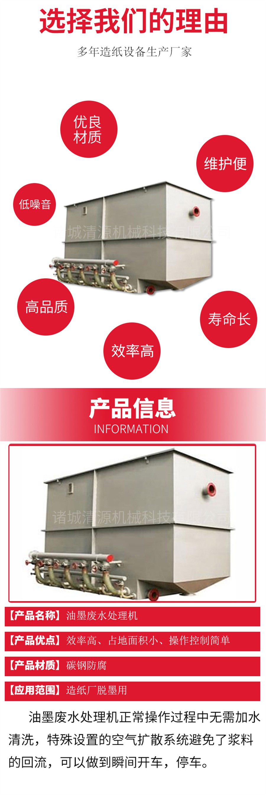 油墨廢水處理機主要性能及優點: