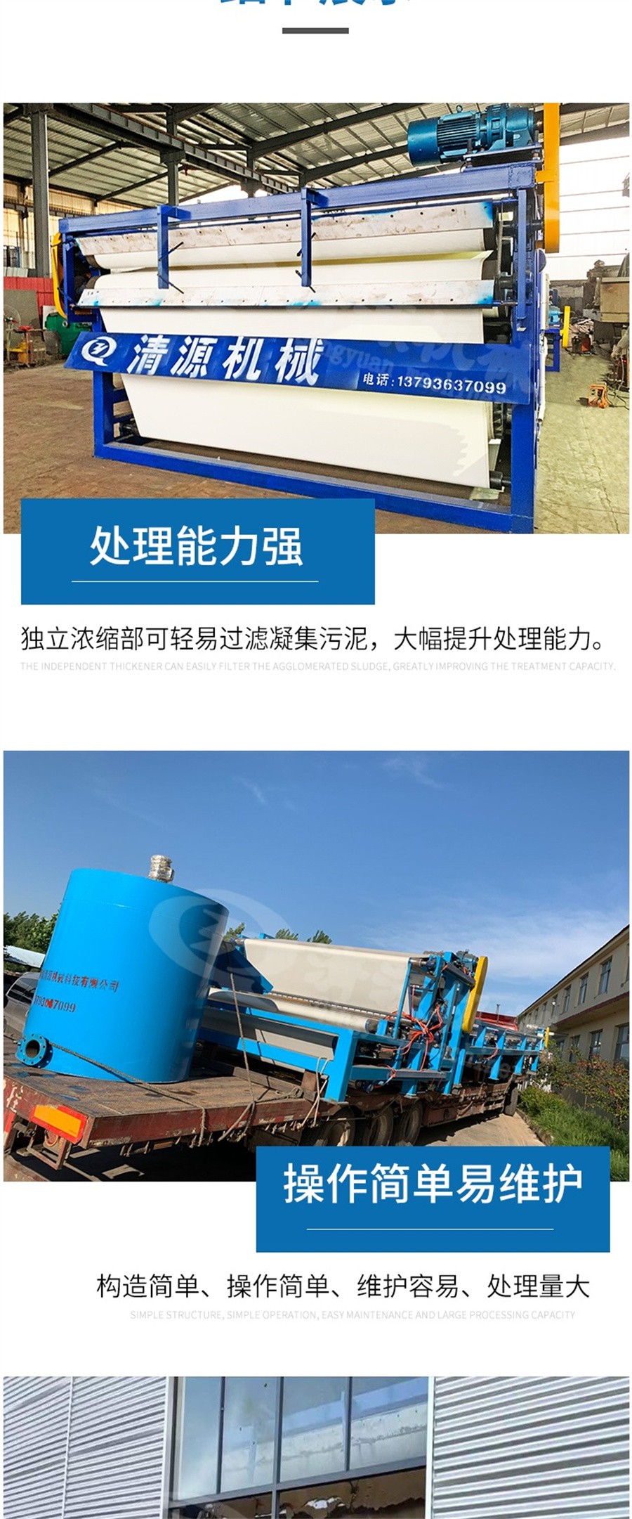 主要由驅(qū)動(dòng)裝置、機(jī)架、壓榨輥、上濾帶、下濾帶、濾帶張緊裝置、濾帶清洗裝置、卸料裝置、氣控系統(tǒng)、電氣控制系統(tǒng)等組成。