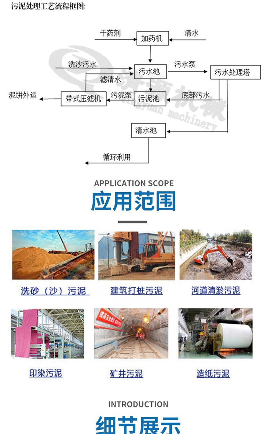 洗沙污污水處理設備專門適用于制沙場洗沙污水處理,建筑打樁泥漿,砂場泥漿脫水,鉆井泥漿處理,隧道山洞泥漿,洗礦廢水處理等各種泥漿和水的分離。